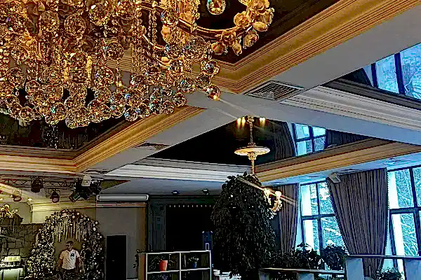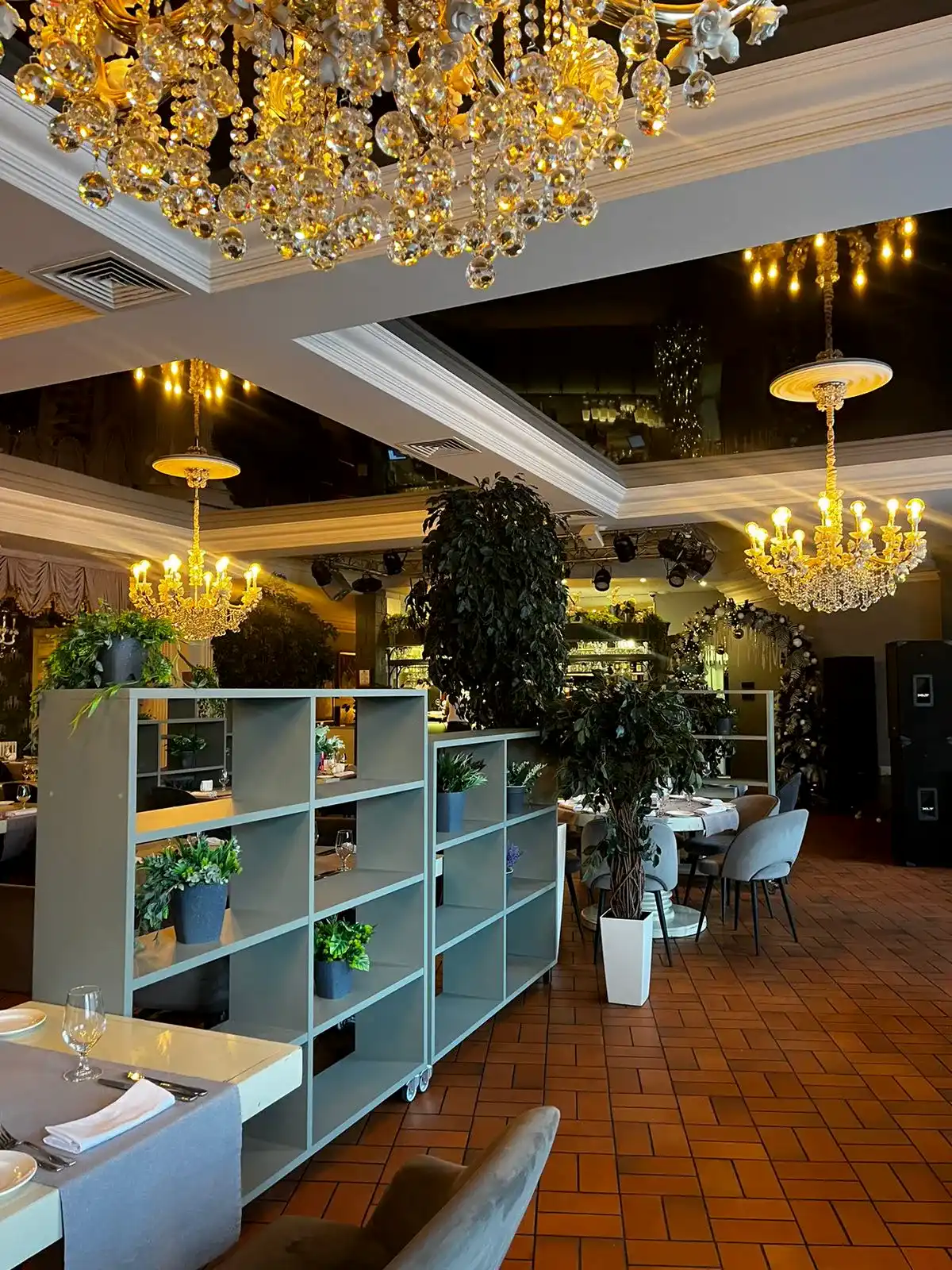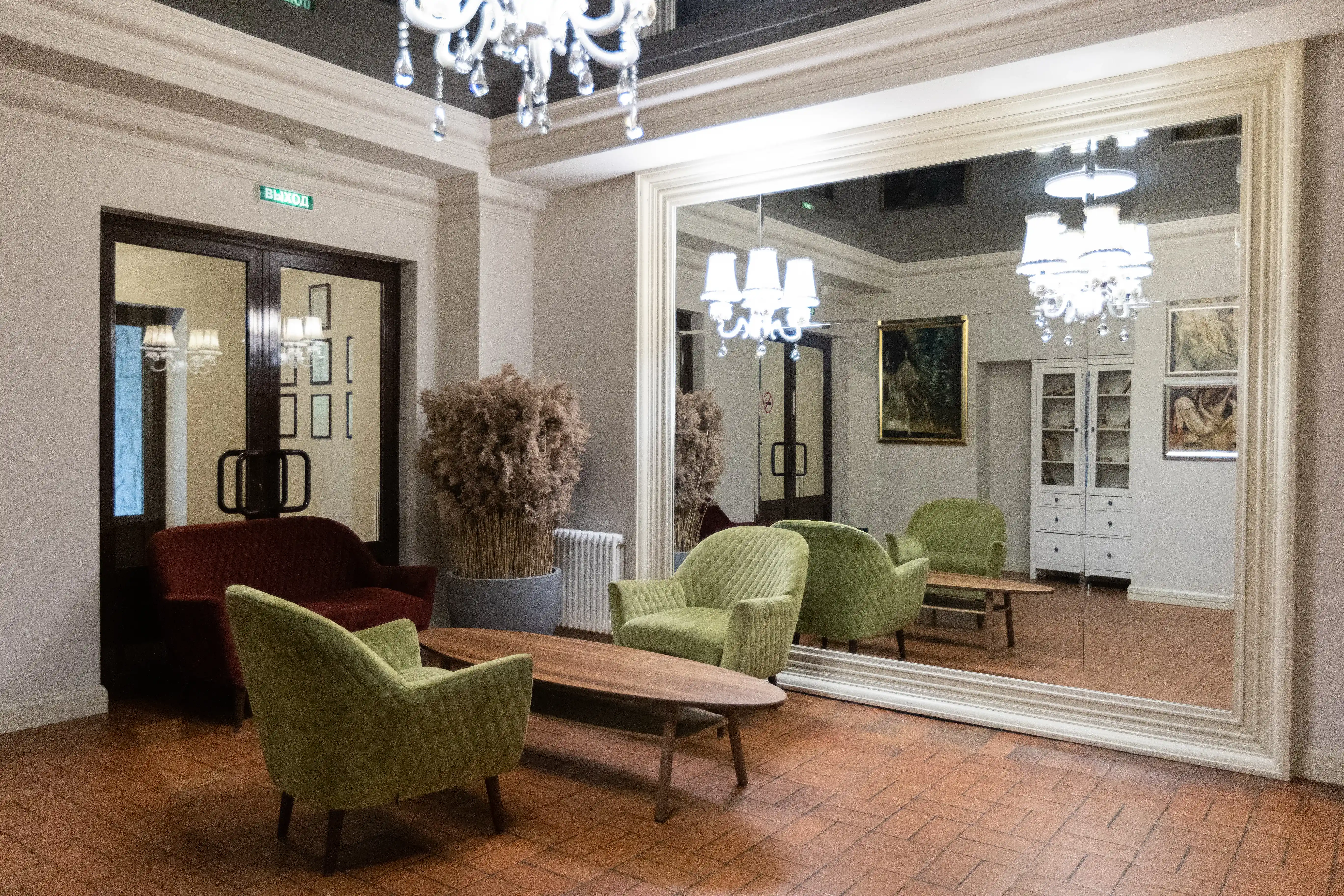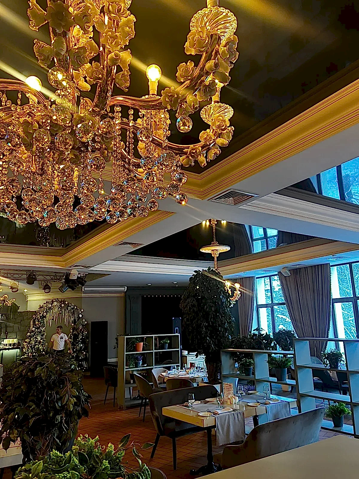 Ресторан Скоморохи представлен двумя залами с панорамными окнами с видом на парк, с прекрасным внутренним интерьером в классическом стиле с отдельными Pin-Up для посетителей и выделенными зонами для больших компаний.