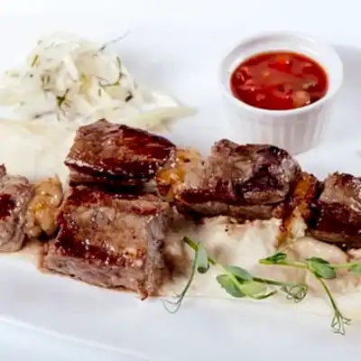 стейк приготовленный на огне, соус клюквенный{{weight}}/{{formatPrice((price + extrasPrice) * count)}}₸