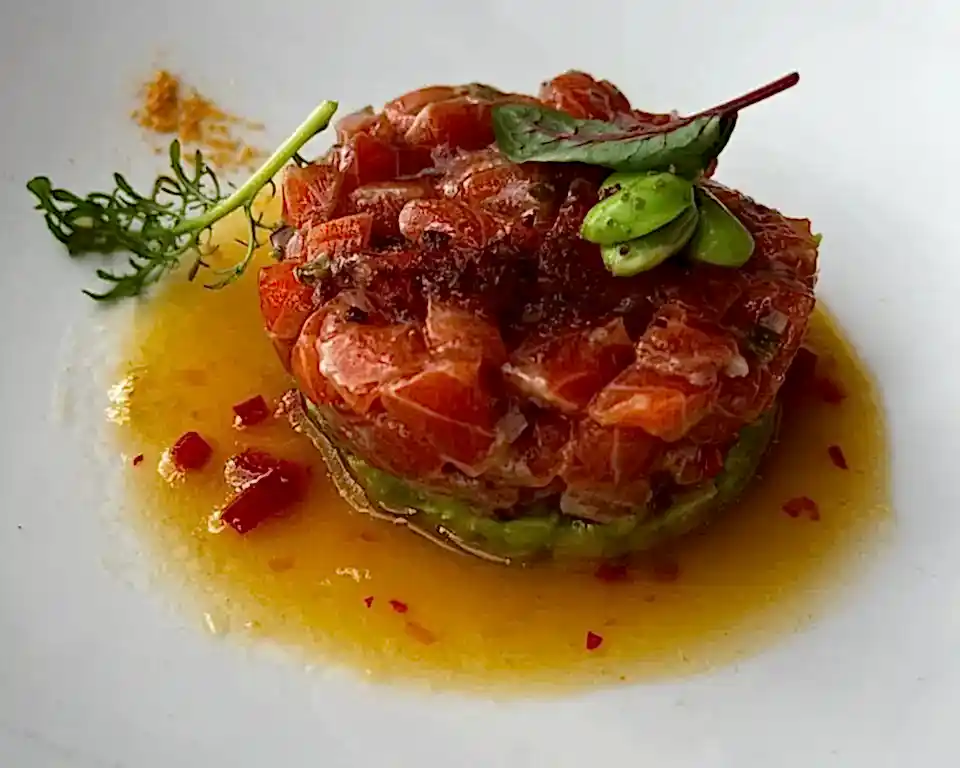 Тар тар из форели с пюре из авокадо и бобов Pin-Up