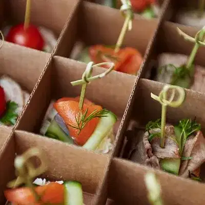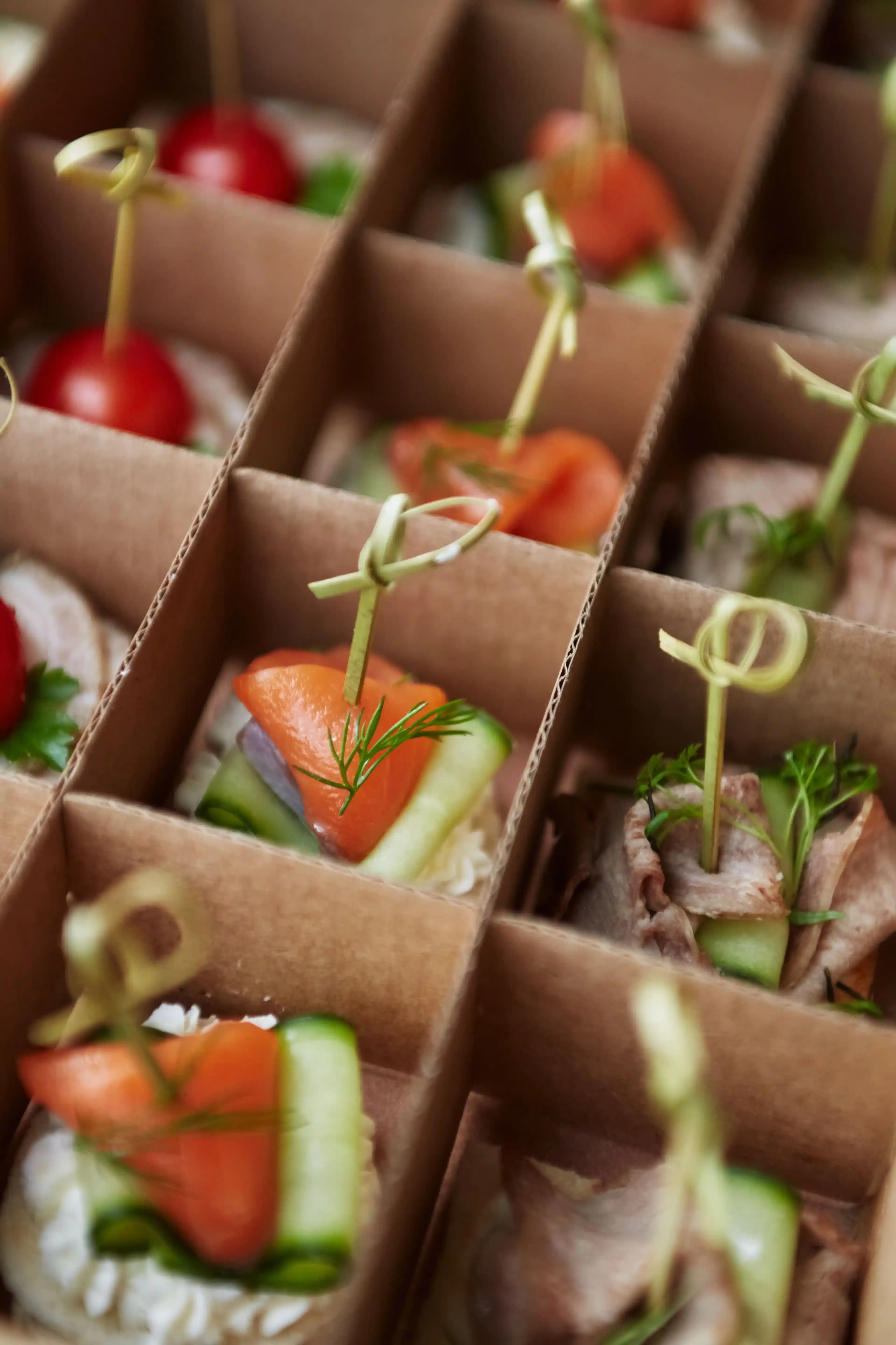 Канапе с сыром "Креметта" и красной икрой. Канапе с сливочным Pin-Up свежим огурцом. Канапе с буже...{{weight}}/{{formatPrice((price + extrasPrice) * count)}}₸