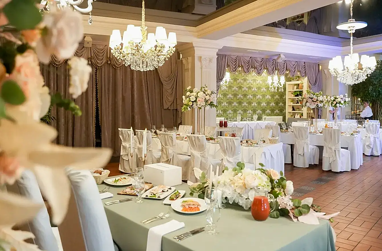 Интерьер ресторана подчеркнет торжественность вашей свадьбы, поскольку он оформлен в классическом стиле, что несомненно оставит лучшие воспоминания и отличные фото, связанные с этим важным событием. Из двух видовых Pin-Up с панорамными окнами открывается волшебный вид на сквер. Вы практически на расстоянии вытянутой руки от природы.В зависимости от количества гостей Pin-Up выбрать: